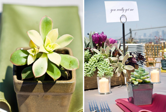 Anche i centritavola possono avere mille utilizzo diversi. Potete utilizzare le piante grasse come nell’organizzazione di questo matrimonio. Ma anche le lanterne si possono prestare a essere messe come segnaposti. Di lanterne poi ne esistono di tantissimi tipi. Se le doveste usare le lanterne come segnaposti potete usare per l’illuminazione un filo di lampadine da esterno, che sono molto belle ed essenziali.
