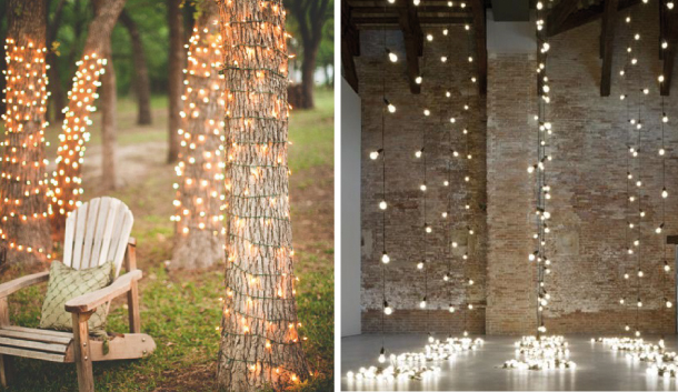 Salve ragazze! Visto che siamo in periodo di Natale, ho pensato che potesse essere interessante studiare un allestimento di matrimonio realizzato con le luci natalizie.