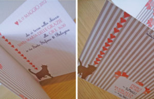 Mi ritengo una grande amante degli animali: ho due gatti che ho adottato dopo il mio matrimonio… e se, quando mi sono sposata, li avessi già avuti in casa, probabilmente sarebbero comparsi anche sulla mia partecipazione di nozze; quindi, ho pensato di ideare una partecipazione di matrimonio dove potesse comparire anche il nostro piccolo amico (che potrebbe anche essere un cane, un criceto, un pappagallo, un pesciolino…. l’immagine del gatto si può togliere e cambiarla con quella dell’animaletto che avete in casa).