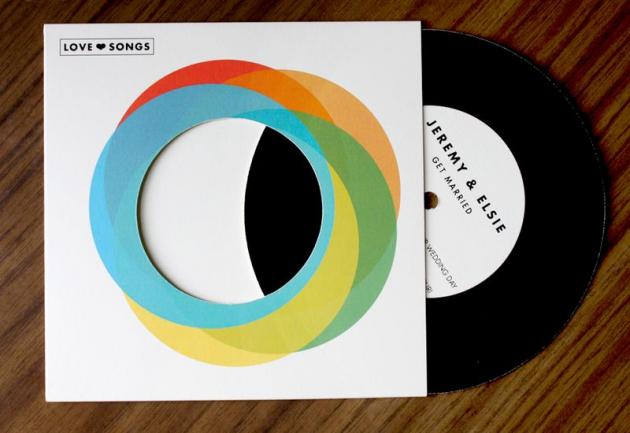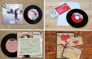 L’idea era di ricostruire l’effetto vinile sulla carte e, sull’etichetta, scrivere le informazioni che si mettono solitamente su partecipazioni e sull’invito. Che ne pensate?