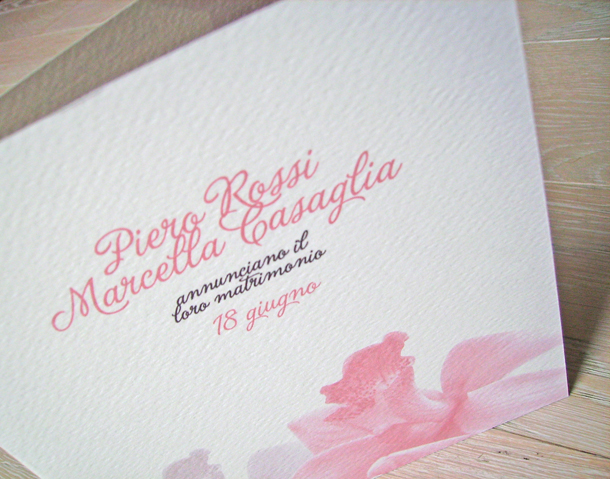 Era in lavorazione già da un po’… finalmente sono riuscita a finire la collezione di partecipazioni di matrimonio con orchidee! Ve l’avevo già anticipata in un altro post e ora finalmente la potete richiedere. Magari non è una collezione molto invernale, ma essendo l’orchidea un fiore molto usato nei matrimoni, ho pensato che anche le partecipazioni potessero essere coordinate a questo fiore. Se vi piace l’idea, non esitate a richiedermi un preventivo per partecipazioni di matrimonio con orchidee personalizzate. Fatelo anche se per il vostro matrimonio avete scelto un altro tipo di fiore: possiamo provare a creare il layout su misura! Ho già realizzato in passato partecipazioni di matrimonio anche con rose, peonie, ortensie, fiori stilizzati e tanti altri generi ;)
