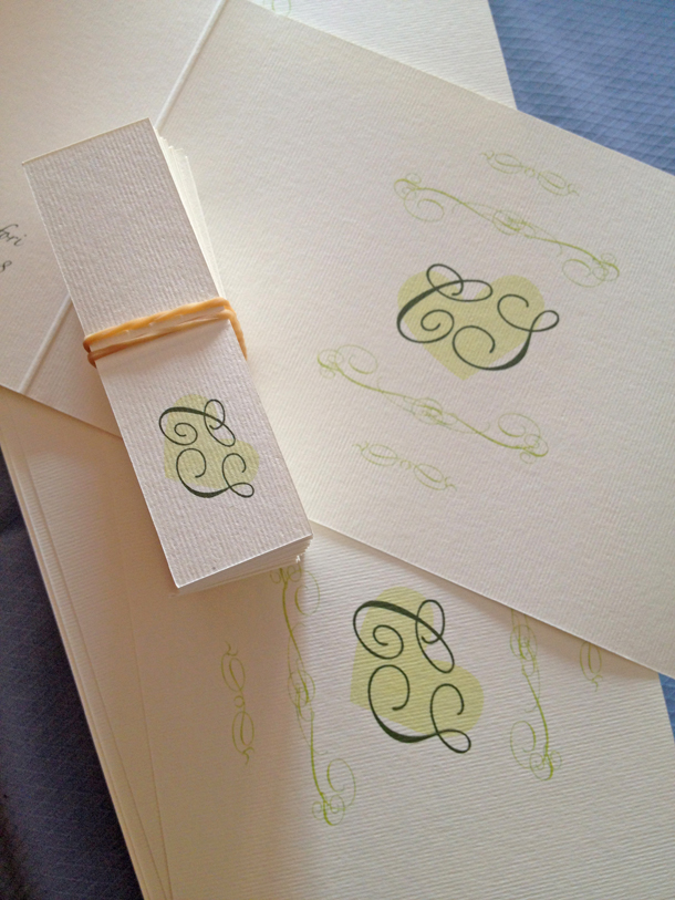Personalizzare le partecipazioni di matrimonio con le vostre iniziali è un’operazione molto semplice. Basta scegliere il formato adatto al vostro matrimonio e se vi piace l’idea del monogramma, si può progettare insieme un logo, che sia unico e credibile. Possiamo decidere il tipo di stampa più adatta a un “marchio” che vi rappresenta, stampa a caldo, stampa oro tipografico (più opaca ma con un risultato molto bello), stampa a secco una stampa a rilevo senza inchiostro, oppure una semplice stampa digitale, ma con una grafica ricercata.