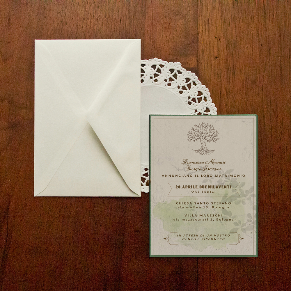 Verrà inviata una bozza della Partecipazione al vostro indirizzo mail per per il controllo grafico e ortografico e verranno attuate modifiche fino a quando le partecipazioni non saranno ritenute perfette. Una volta ricevuto l'ok dai futuri sposi, il materiale sarà inviato in stampa. Poi il tutto sarà confezionato. E infine inviato al vostro indirizzo di spedizione tramite Corriere Sda.