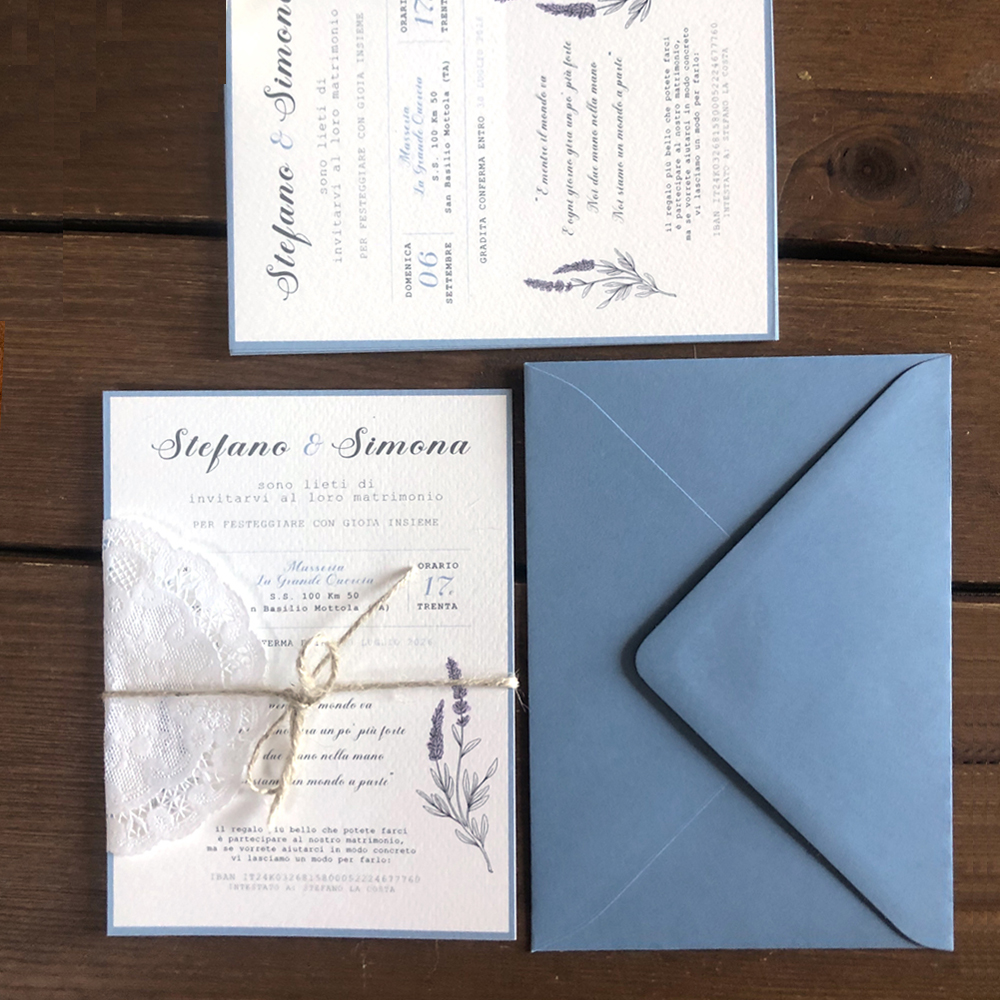 Partecipazione di nozze shabby chic con centrino: mod. 1